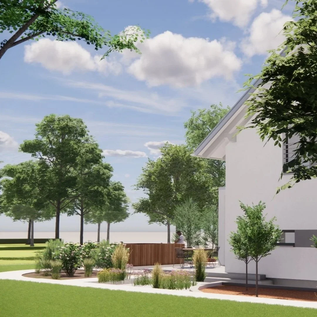 Digital modeling provides a multi-perspective visulization tool, that enhances decision-making. This image from a digital model showcases a thoughtfully designed outdoor living space, highlighting the aesthetic and functional components.