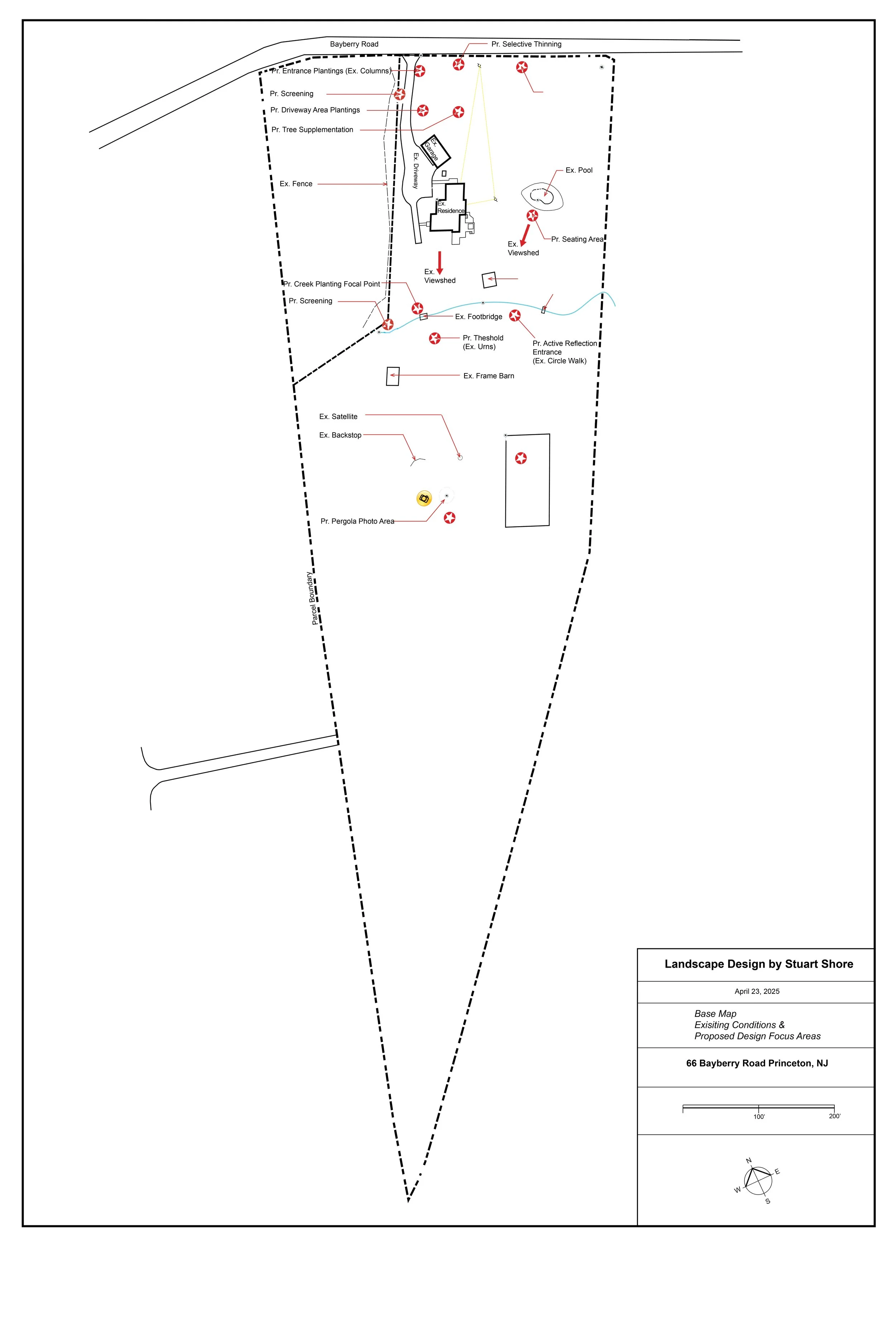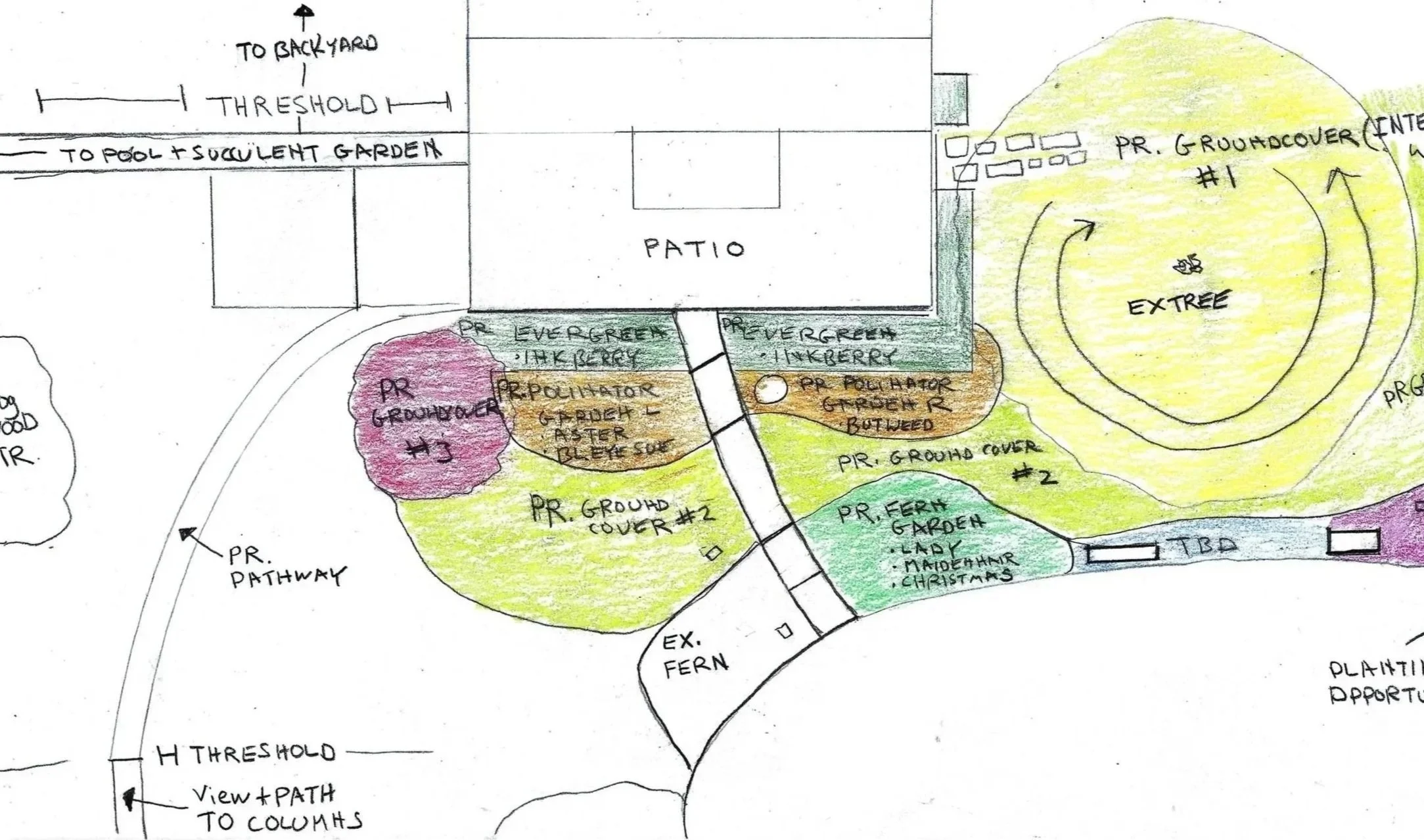 A scaled plan showing plant locations and notes for accurate pricing and installation.