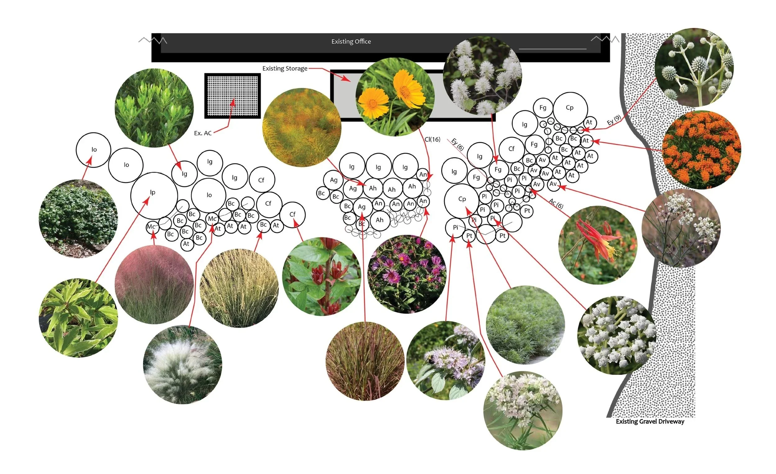A curated plant list with quantities and specifications to support ordering and substitutions.